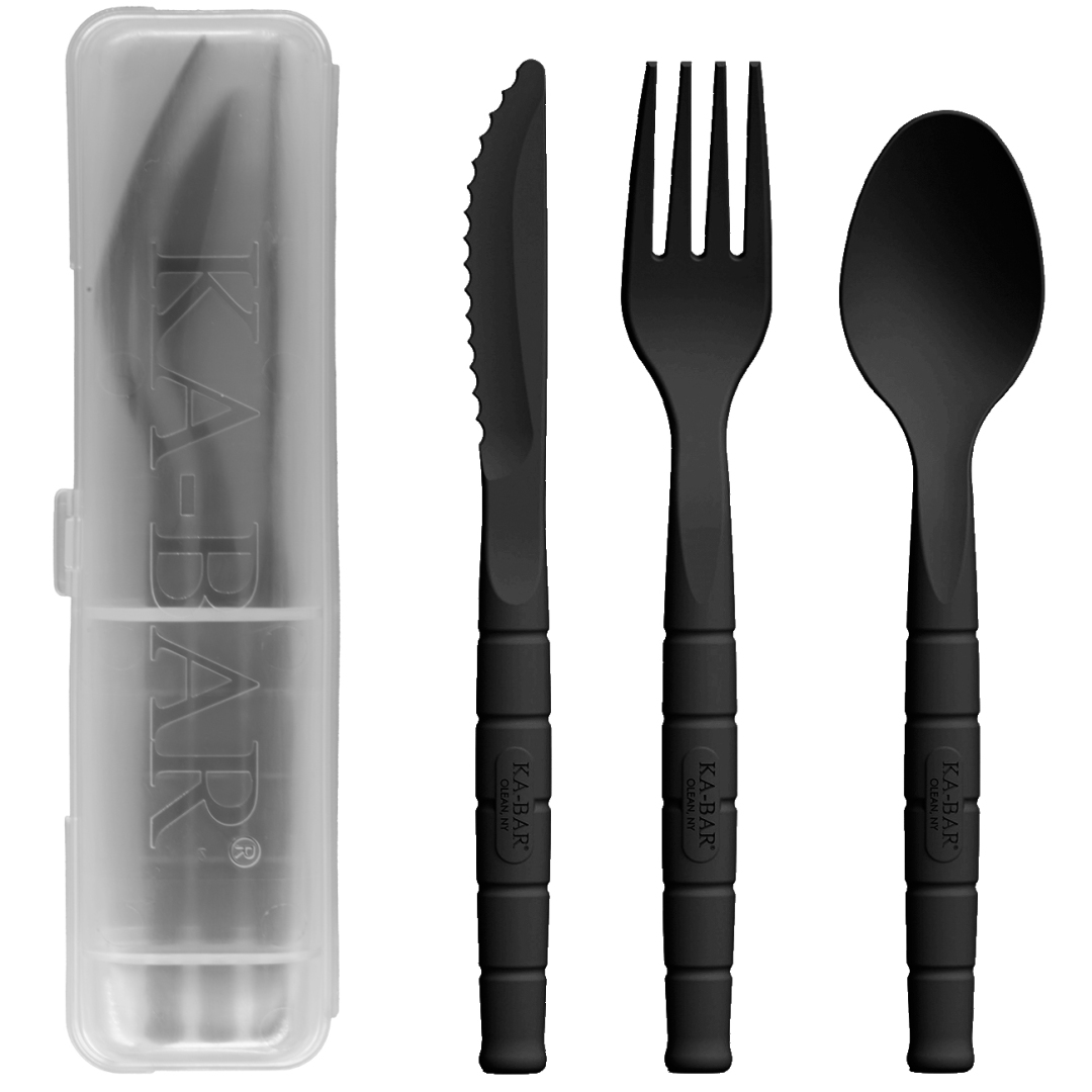 The USA-made Lunch Pal comes with a full-size fork, knife, spoon, and storage case. Throw the Lunch Pal in your pack or glovebox without worrying about it getting dirty thanks to the convenient storage case. The storage case is clearly marked with a spot for each utensil - no one wants to fight to fit items back in a case.